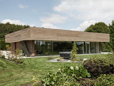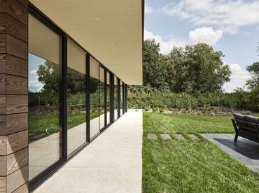 This new pavilion property was designed by Carlos Gris Studio for Gretta Funnell as she returns from 20 years living in Malaysia, after Ray, her husband sadly passed away. She purchased an isolated piece of land in the fenlands with the hope of starting a new life living nearer her family. This simple rectangular pavilion is both classical and modernist in style and absorbs the linear and minimal tastes Gretta adopted from interiors in Kuala Lumpur.